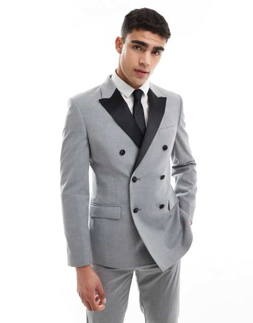 ASOS DESIGN double breasted skinny suit jacket in grey