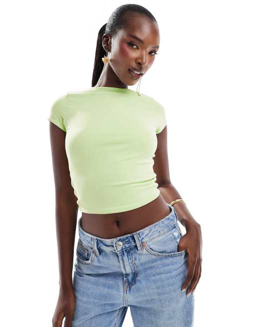 ASOS DESIGN double layer second skin short sleeve crop top in lime