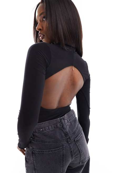 ASOS DESIGN double layer slinky backless bodysuit in black