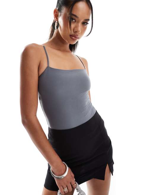 ASOS DESIGN double layer slinky cami bodysuit in grey
