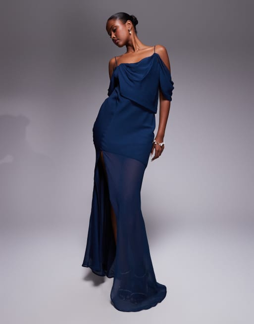 ASOS DESIGN drape front chiffon maxi dress in navy