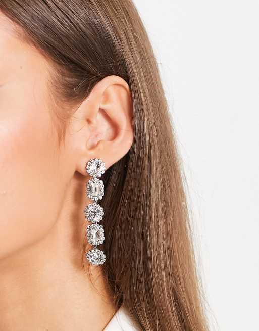 ASOS DESIGN drop earrings in mixed crystal drench linear drop in silver tone