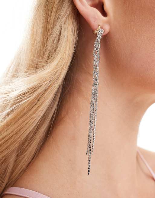 ASOS DESIGN drop earrings with plait simple crystal drench design in silver tone