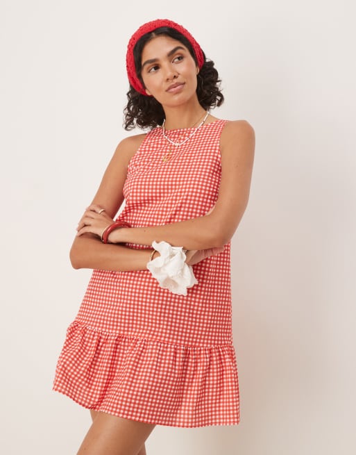 ASOS DESIGN dropped waist shift mini dress with scoop back in red gingham