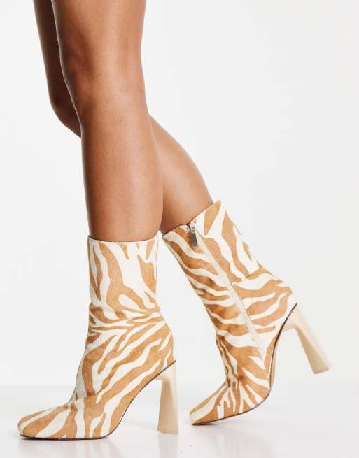 ASOS DESIGN Eagle premium leather high-heeled square toe boots in zebra print