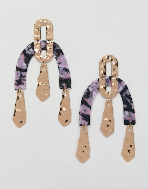 ASOS DESIGN earrings with resin and hammered metal pendants in gold
