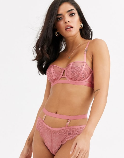 ASOS DESIGN Eloise underwire bra and thong with bone & ring