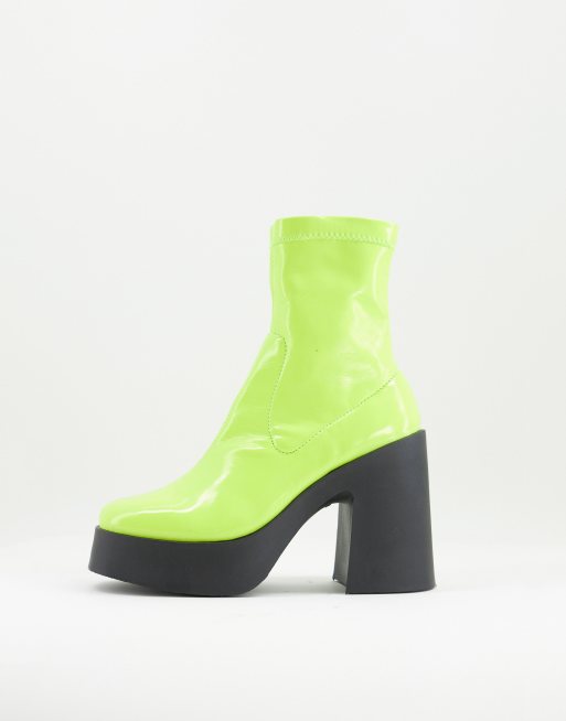 ASOS DESIGN Elsie high heeled sock boot in neon green