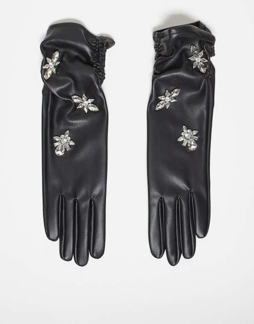 ASOS DESIGN embellished gem stone long gloves in black