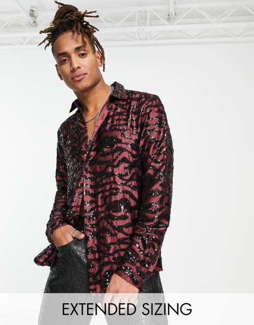 ASOS DESIGN embellished shirt with tiger sequin design in brown