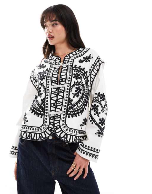 ASOS DESIGN embroidered twill jacket in white