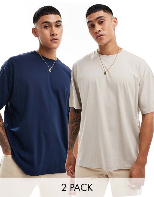 ASOS DESIGN essential 2 pack oversized t-shirts in stone and navy