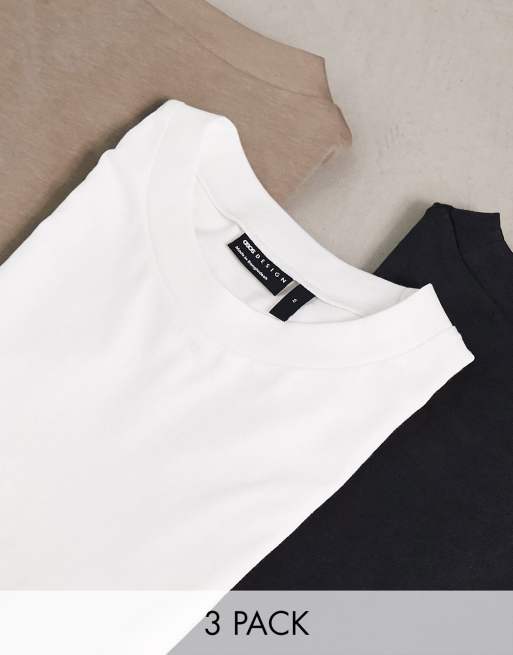 ASOS DESIGN essential 3 pack relaxed t-shirt with in white, black and brown
