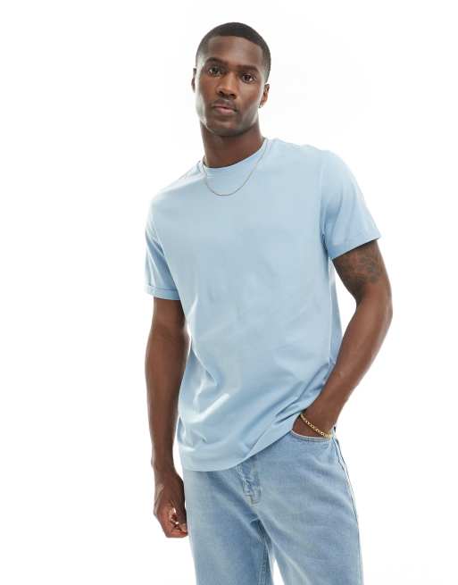 ASOS DESIGN essential crew neck t-shirt with roll sleeve in light blue