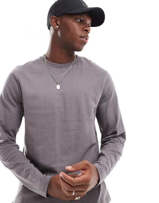 ASOS DESIGN essential long sleeve t-shirt with regular fit in charcoal