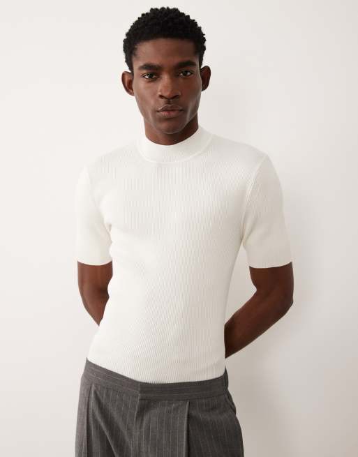 ASOS DESIGN Essential muscle-fit fine-rib knit turtle-neck in off-white