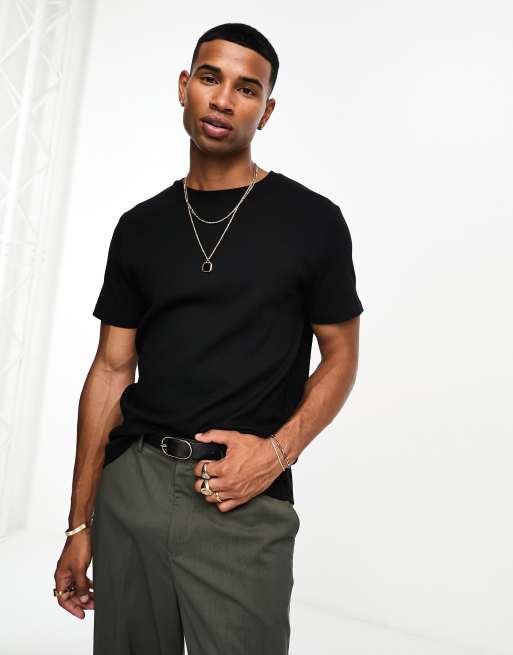 ASOS DESIGN essential muscle fit rib t-shirt in black