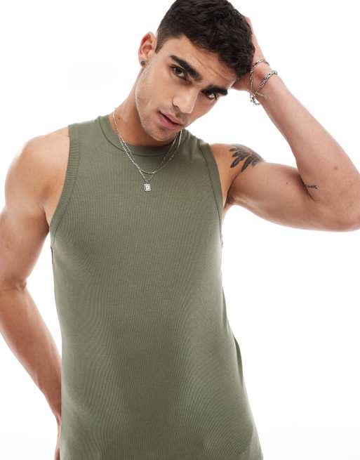ASOS DESIGN essential muscle rib vest with crew neck in khaki