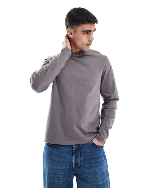 ASOS DESIGN Essentials long sleeve t-shirt with crew neck in charcoal