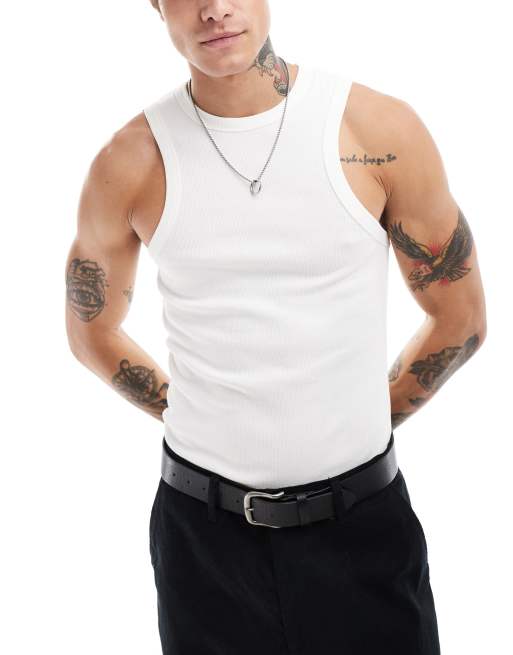 ASOS DESIGN essentials muscle fit racer vest in white rib