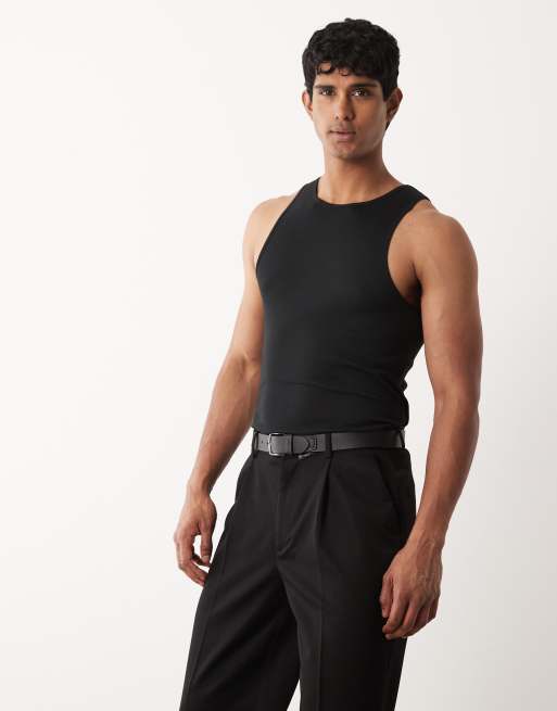 ASOS DESIGN Essentials muscle fit rib vest in black
