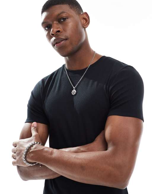 ASOS DESIGN Essentials muscle fit t-shirt in black rib