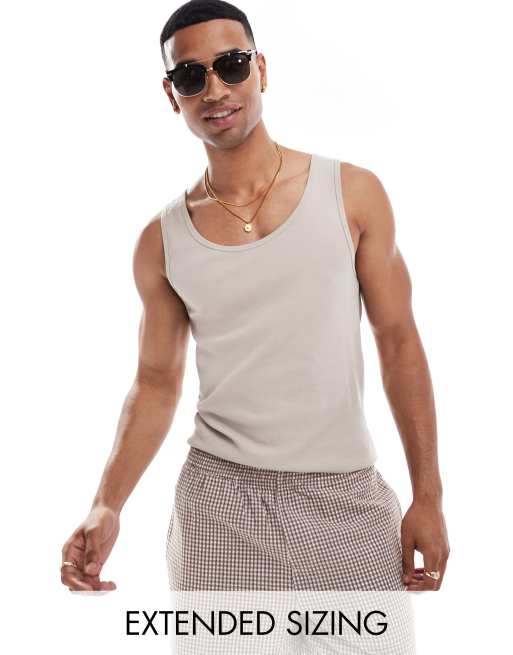 ASOS DESIGN essentials muscle fit vest in stone rib