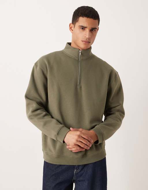 ASOS DESIGN essentials relaxed fit quarter zip sweatshirt in green