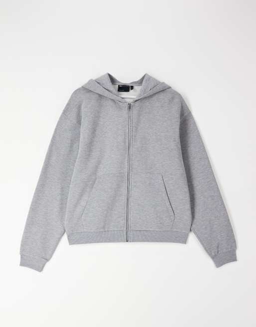 ASOS DESIGN essentials relaxed fit zip through hoodie grey marl