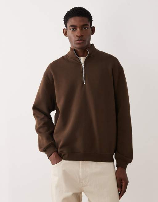ASOS DESIGN essentials relaxed half zip sweatshirt in brown