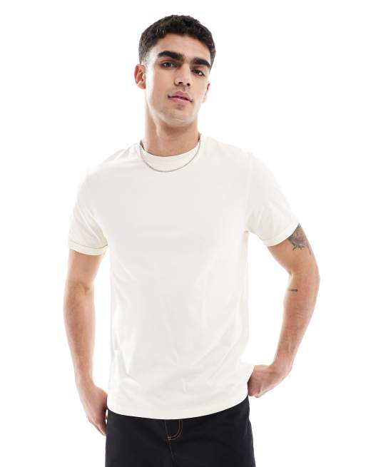 ASOS DESIGN essentials roll sleeve t-shirt with crew neck in cream