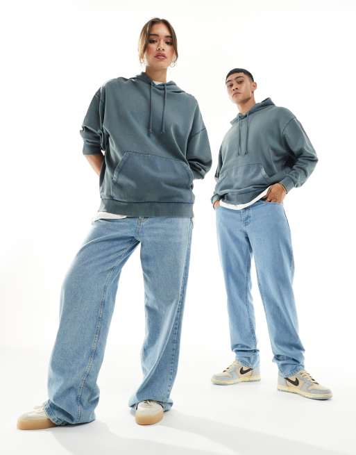 ASOS DESIGN essentials unisex oversized hoodie in acid wash navy - NAVY