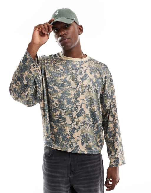 ASOS DESIGN extreme oversized boxy long sleeve sporty mesh t-shirt in camoflage print