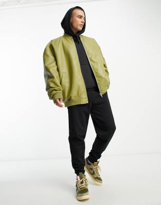 ASOS DESIGN extreme oversized faux leather bomber jacket in green