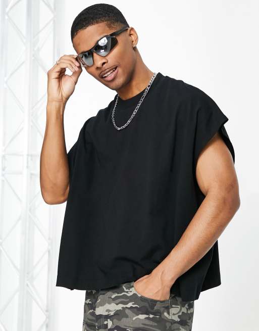 ASOS DESIGN extreme oversized heavyweight crop vest in black