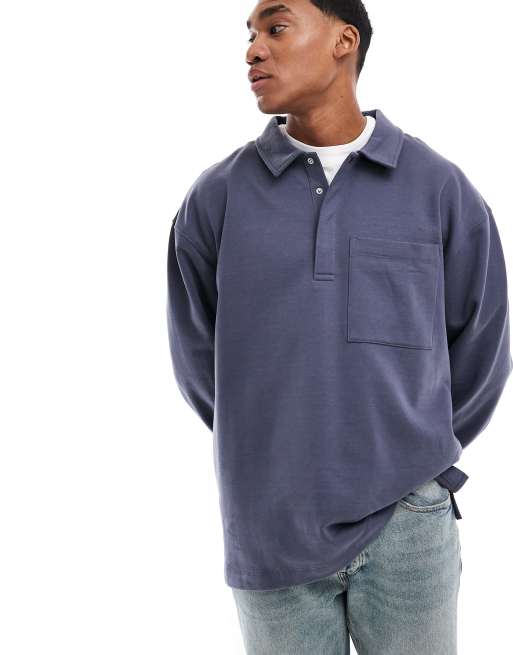 ASOS DESIGN extreme oversized rugby polo in blue