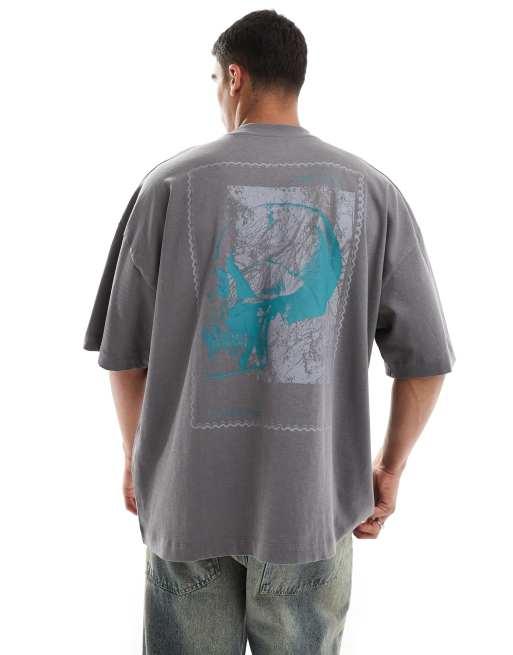 ASOS DESIGN extreme oversized t-shirt grey with skull back print