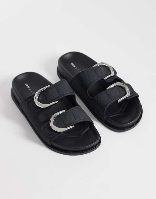 ASOS DESIGN Falcon double buckle footbed sandal in black