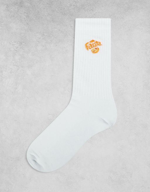 ASOS DESIGN Fanta logo embroidery socks in white - WHITE