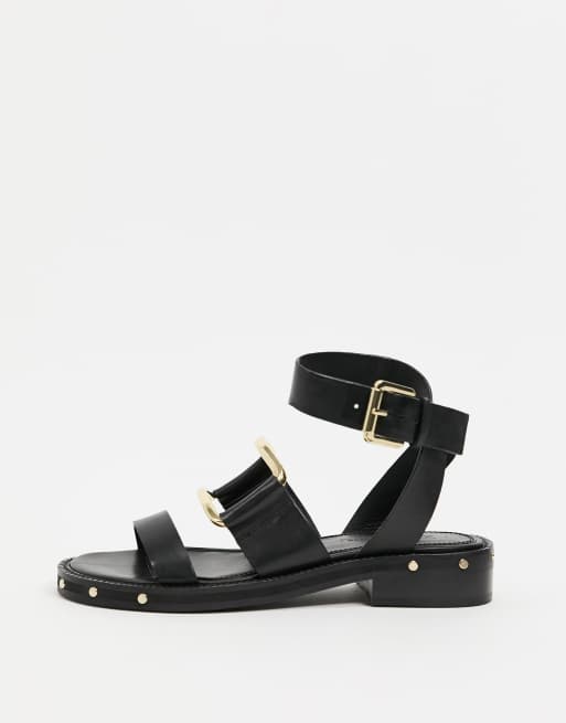 ASOS DESIGN Farley premium leather chunky studded flat sandals in black