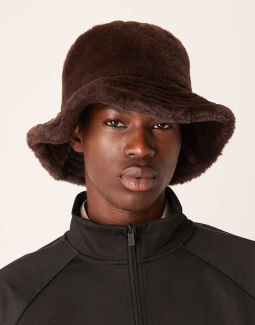 ASOS DESIGN faux fur bucket hat in brown