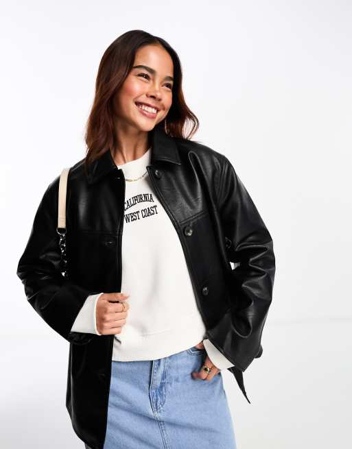 ASOS DESIGN faux leather clean top collar jacket in black