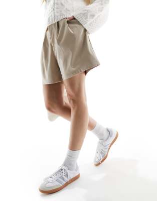 ASOS DESIGN faux leather dad short in brown