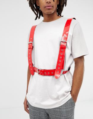 ASOS DESIGN faux leather harness in red patent