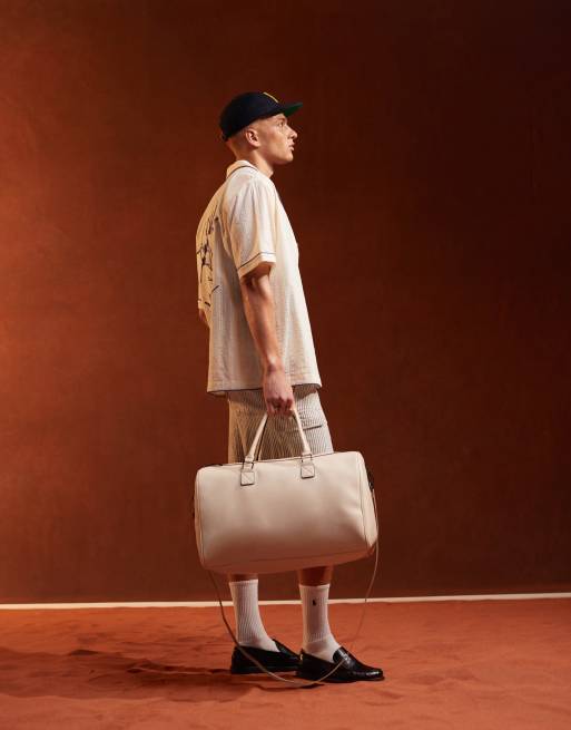 ASOS DESIGN faux leather holdall in ecru
