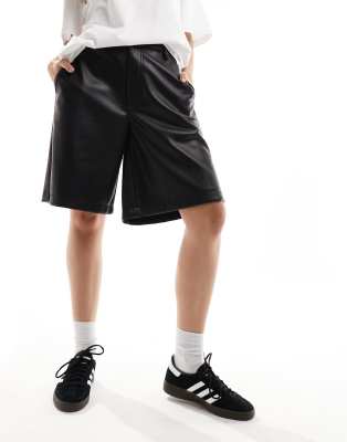 ASOS DESIGN faux leather jort in black