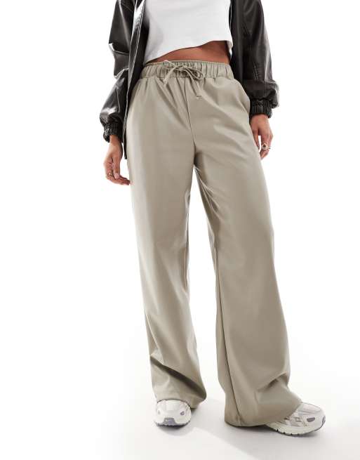ASOS DESIGN faux leather wide leg pull on trousers in stone