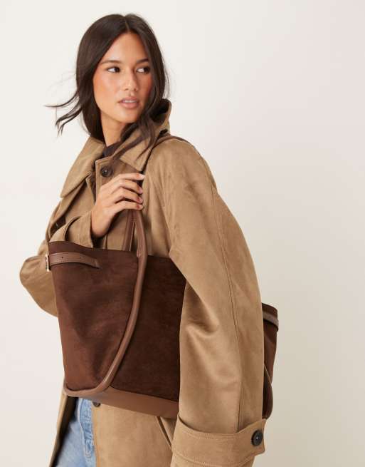 ASOS DESIGN faux suede belted tote bag in chocolate