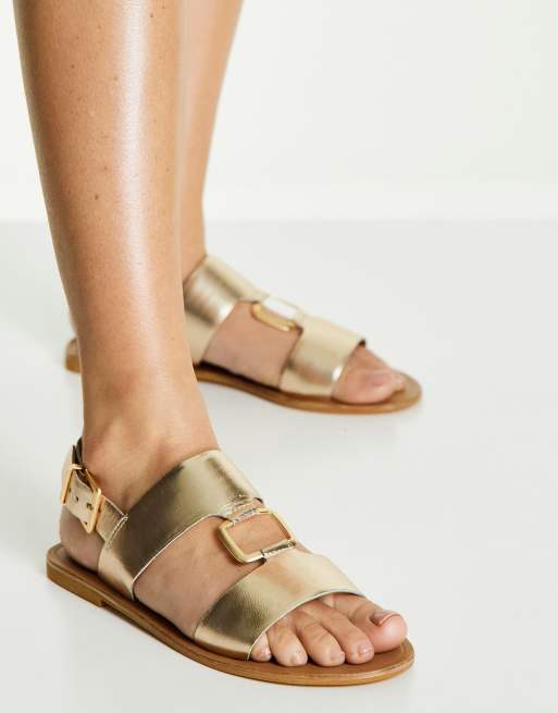 ASOS DESIGN Fenix leather ring detail flat sandals in gold