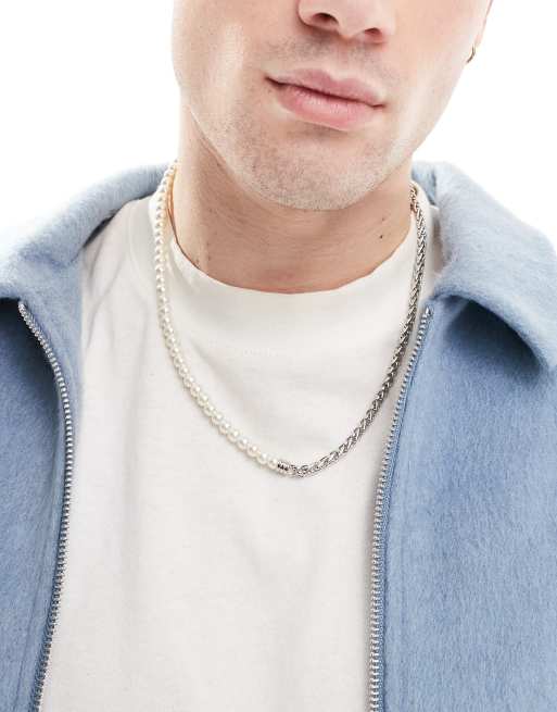 ASOS DESIGN festival faux pearl and chain necklace in silver